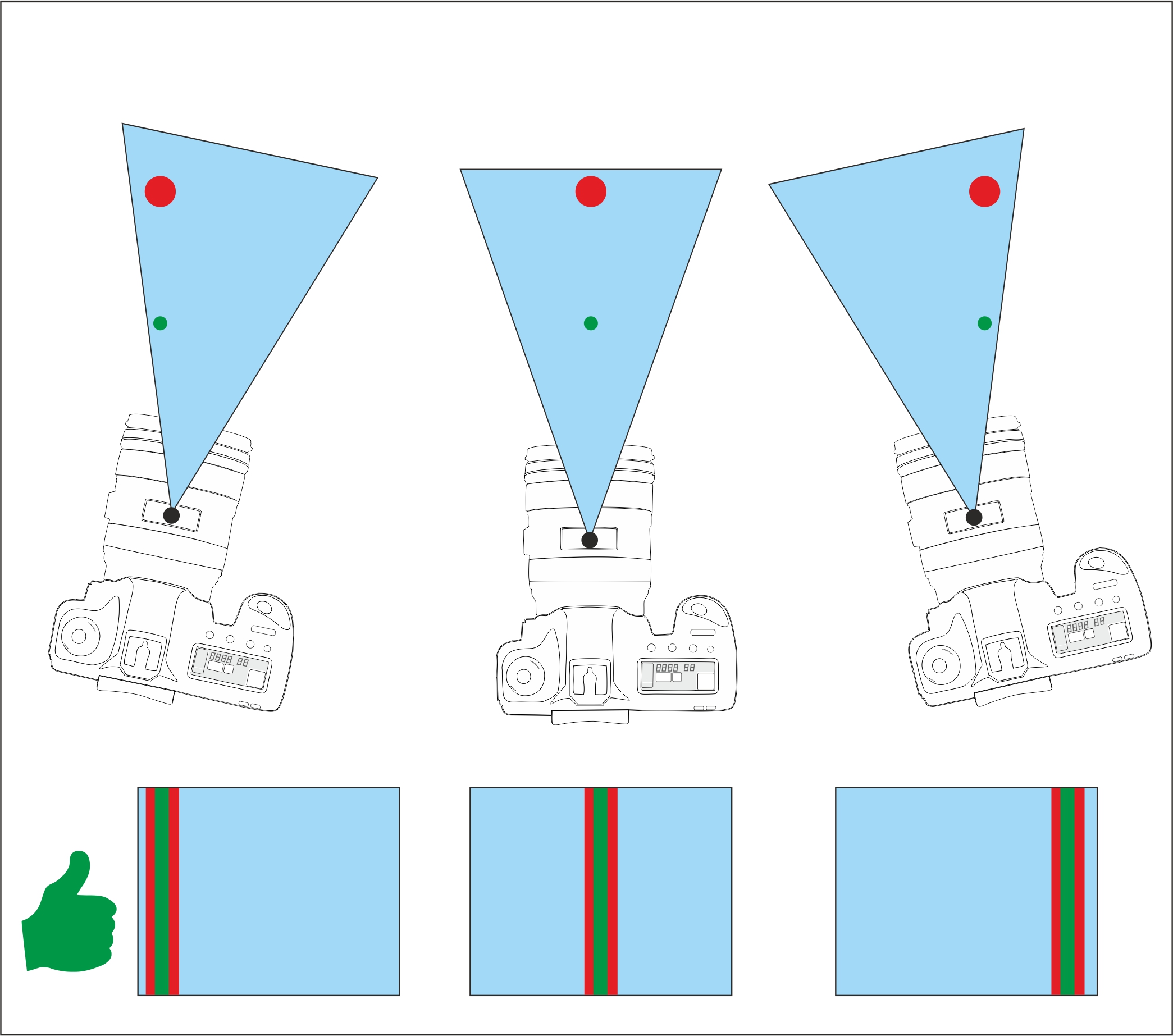 Wenn der Nodalpunkt richtig eingestellt ist, kann die Kamera um den Nodalpunkt schwenken.
