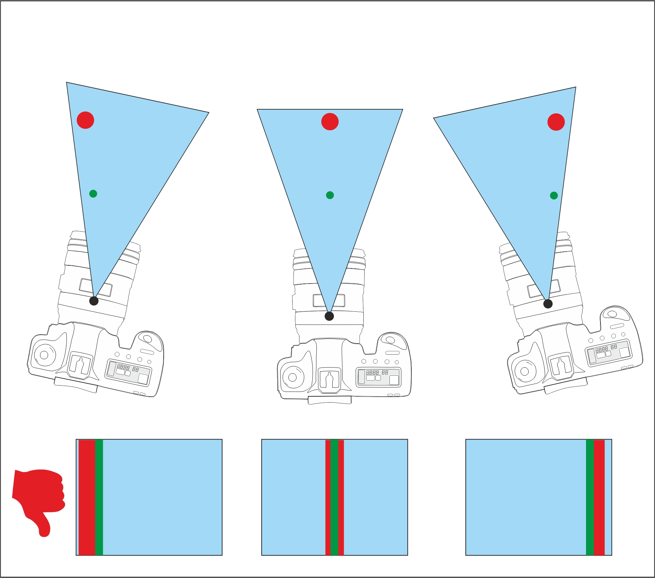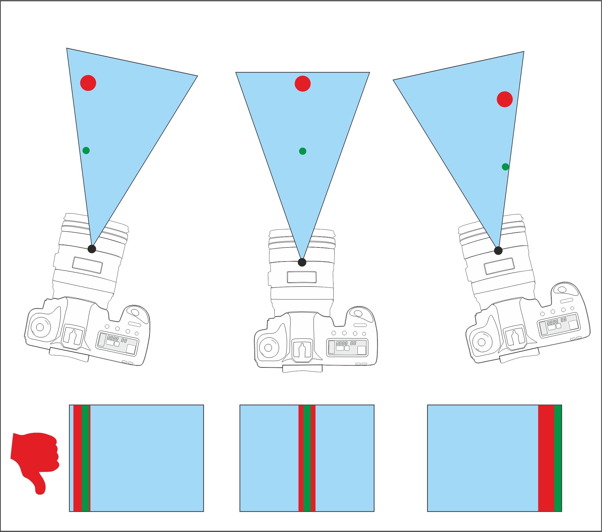 Wenn du deine Kamera um den Kameradrehpunkt drehst, kann es zu Parallaxenfehlern kommen. Parallaxe tritt auf, wenn sich die Position des Objekts relativ zum Hintergrund ändert, wenn du die Kamera bewegst.